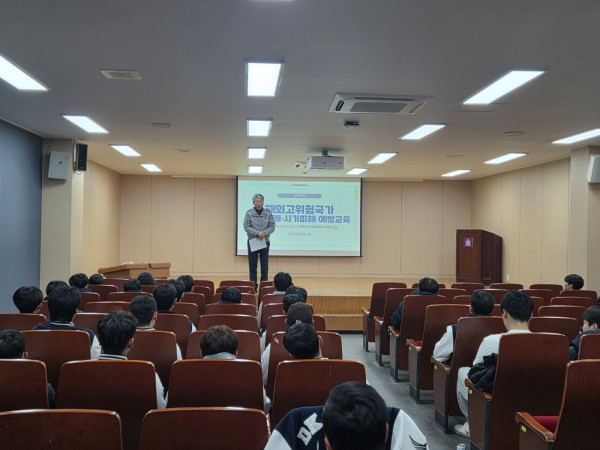 인사초청특강-양시창 경산경찰서장 페이지 정보 작성일2025-11-27 13:59 관련링크 다음글 목록 본문 특강주제: 해외고위험국가 사기피해 예방교육 특강자: 양시창 경산경찰서장 일시: 11월 27일, 10시 ~ 장소: 본관 512호